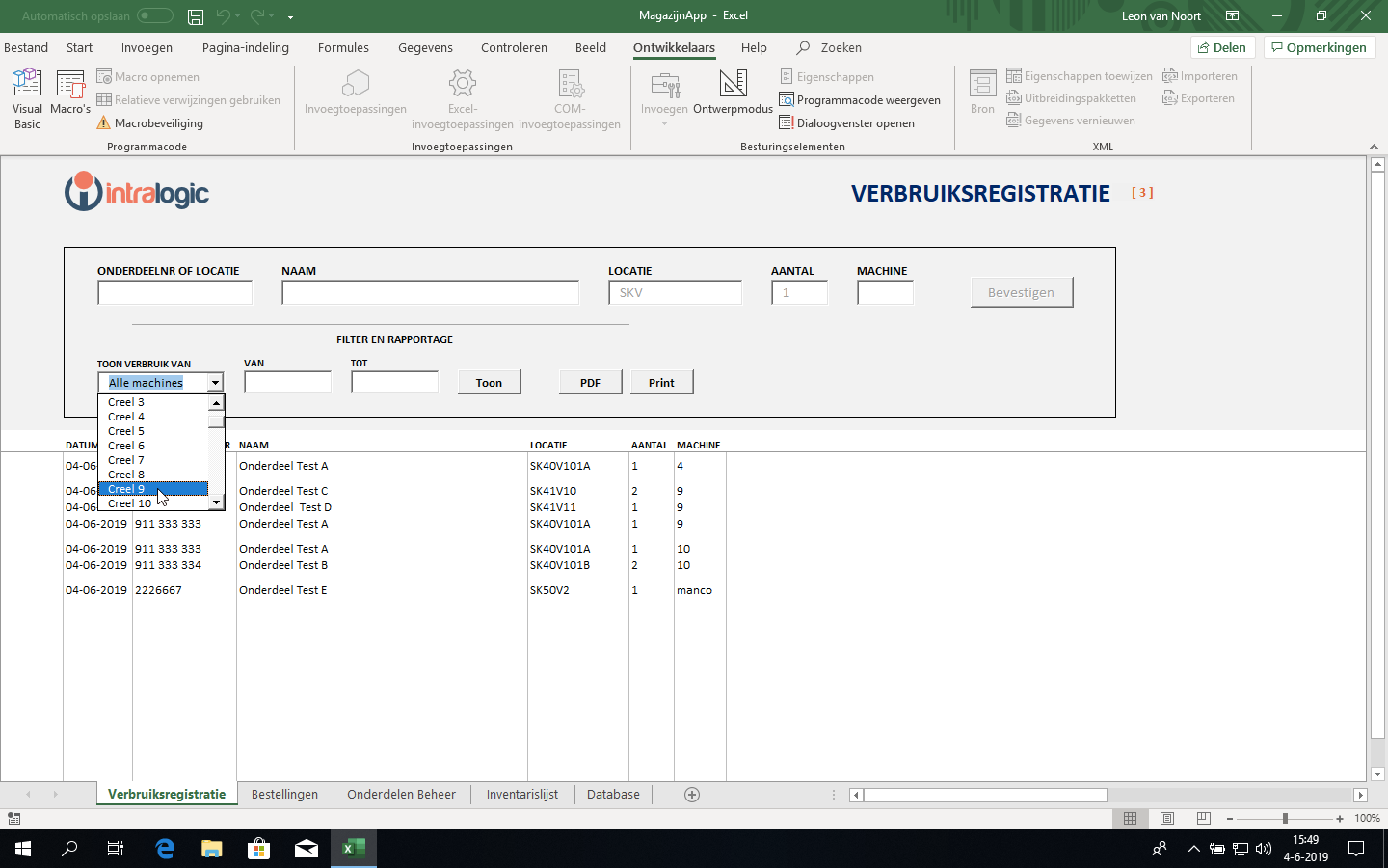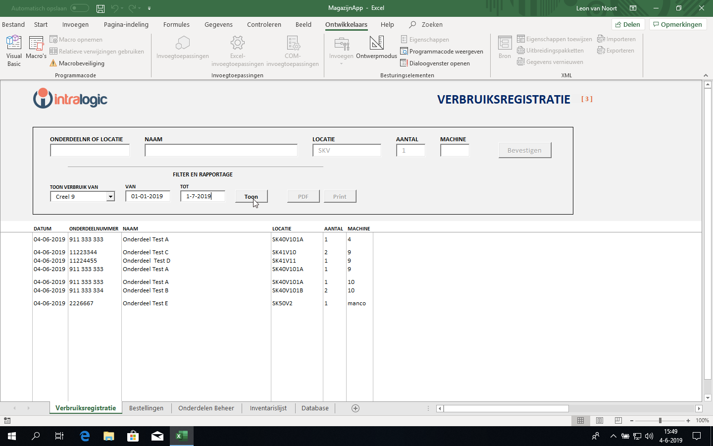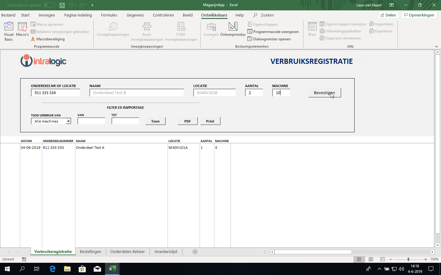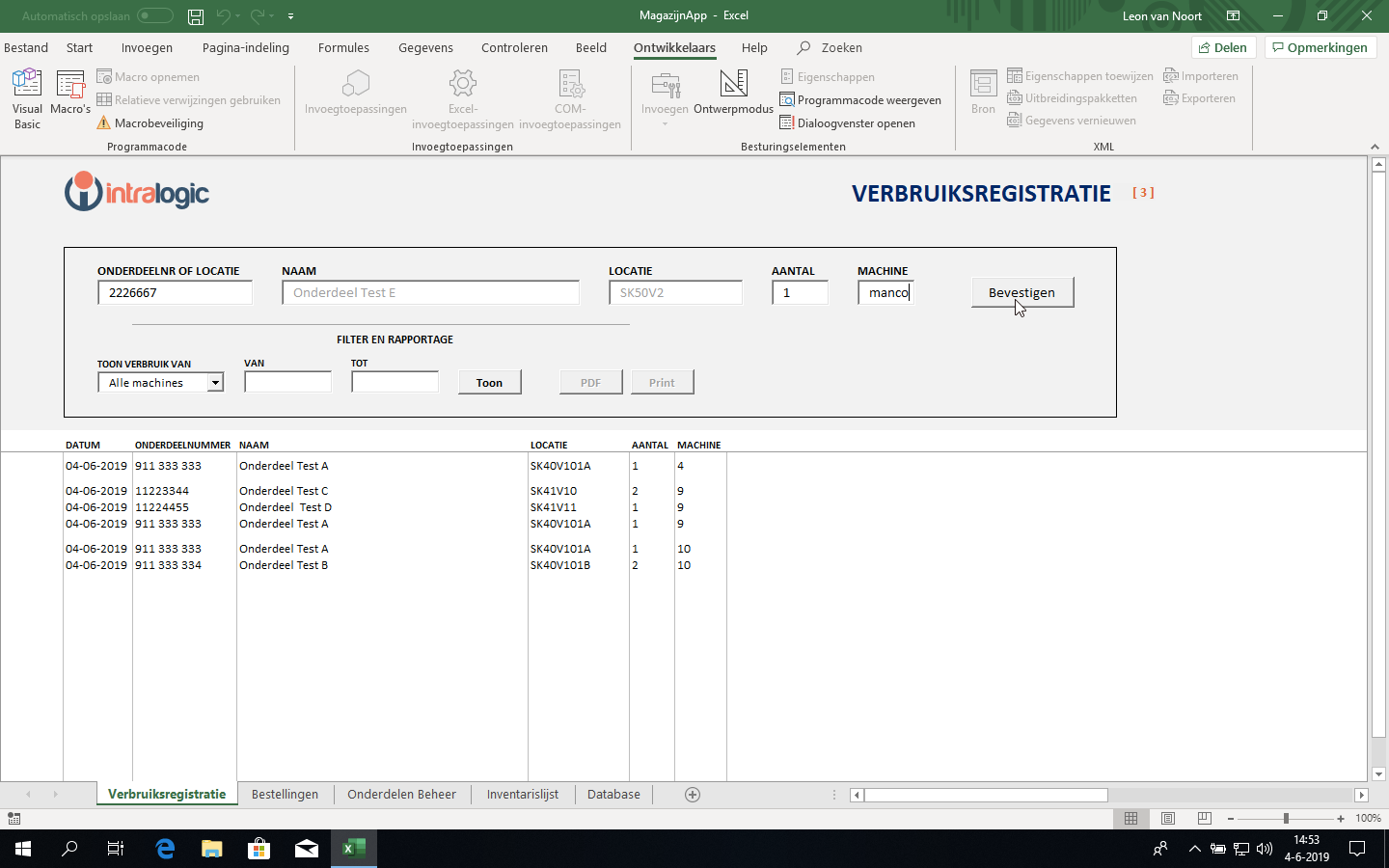 Als er een onderdeel uit het magazijn gehaald wordt, moet dit worden geregistreerd. Hierdoor is het duidelijk welke onderdelen in welke machines zijn gebruikt.